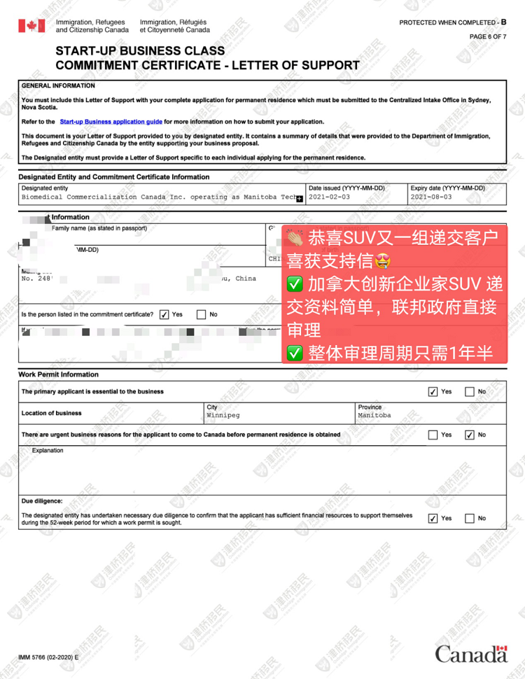 博乐牛年里的第一个喜讯,来自加拿大SUV联邦创业投资移民项目。2021年2月13日,博乐国际又一位申请人拿到孵化器支持信,话不多说,上图: