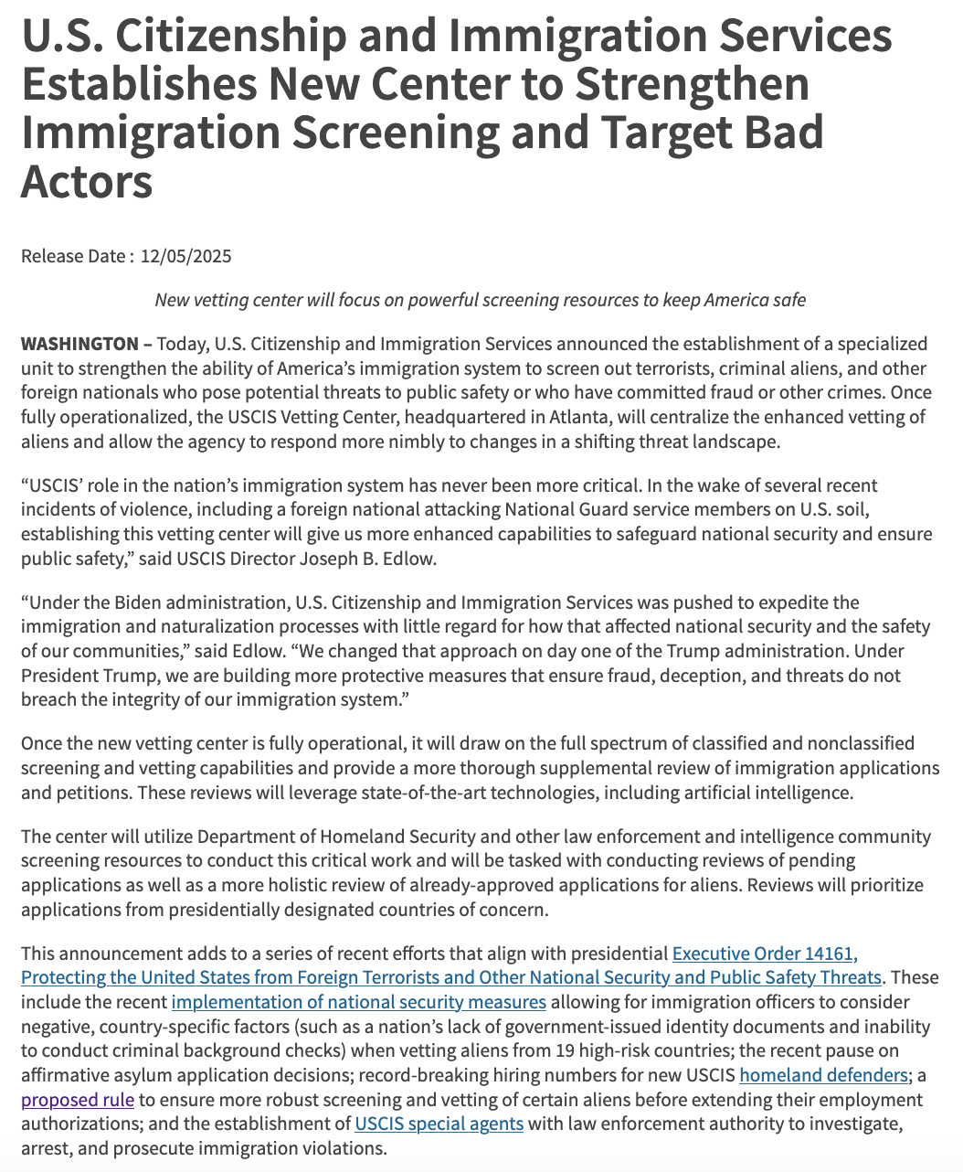 美国政府正在加速把人工智能(AI)搬进移民和签证审批的全流程。除了“效率提升”“执法收紧”,对于需要担保外国人才的雇主、正在申请EB-5、E-2、L-1、H-1B、O-1签证,或是就业类绿卡的投资者均将产生直接影响。