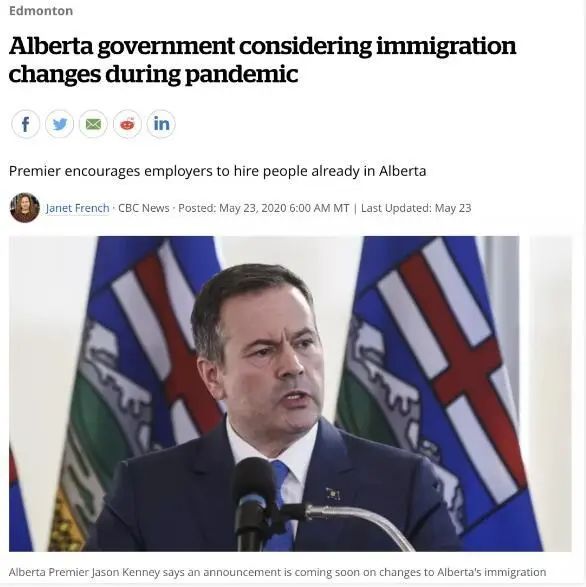 随着疫情的影响,阿尔伯塔的经济受到了比较大的下行压力。省长Jason Kenney最近表示,由于冠状病毒大流行,阿尔伯塔省的移民政策正在发生变化。