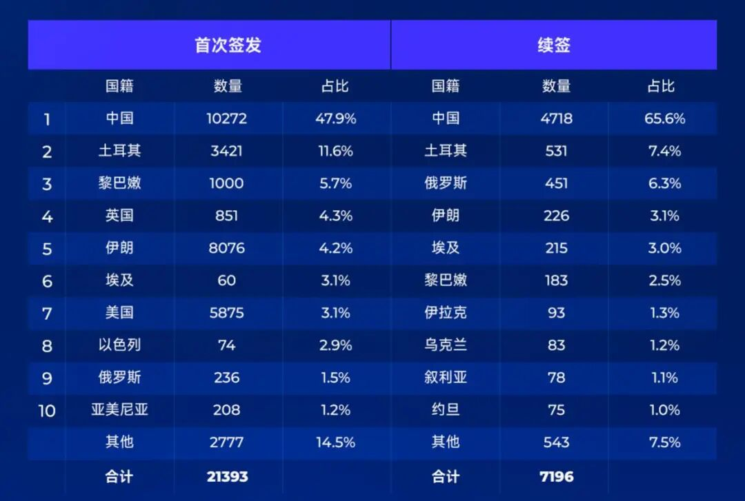 初次获批黄金签证 * 的十大国籍