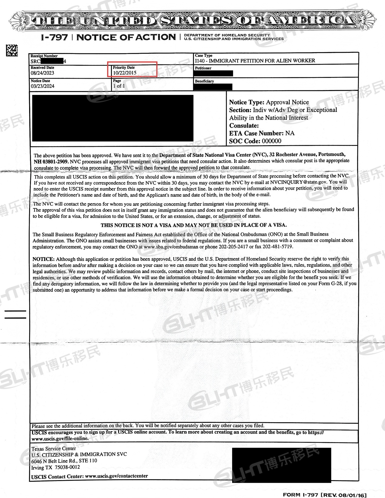 I-140获批时间:2024年03月23日