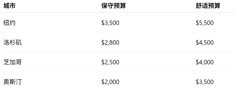 在美国,住房开销往往占到总支出的30%–50%,因此选择合适的房子非常关键。不同城市差异很大:纽约和旧金山房租最贵,奥斯汀、芝加哥相对便宜。