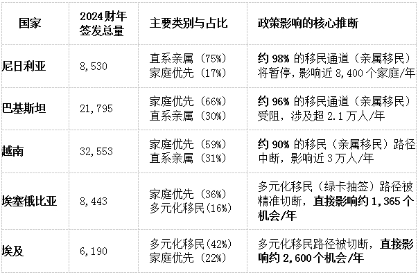 职业与特殊移民:虽然总量较小,但针对特定国家(如阿富汗的特殊移民签证)的专门项目也会暂停,影响虽小众但关键的人群。