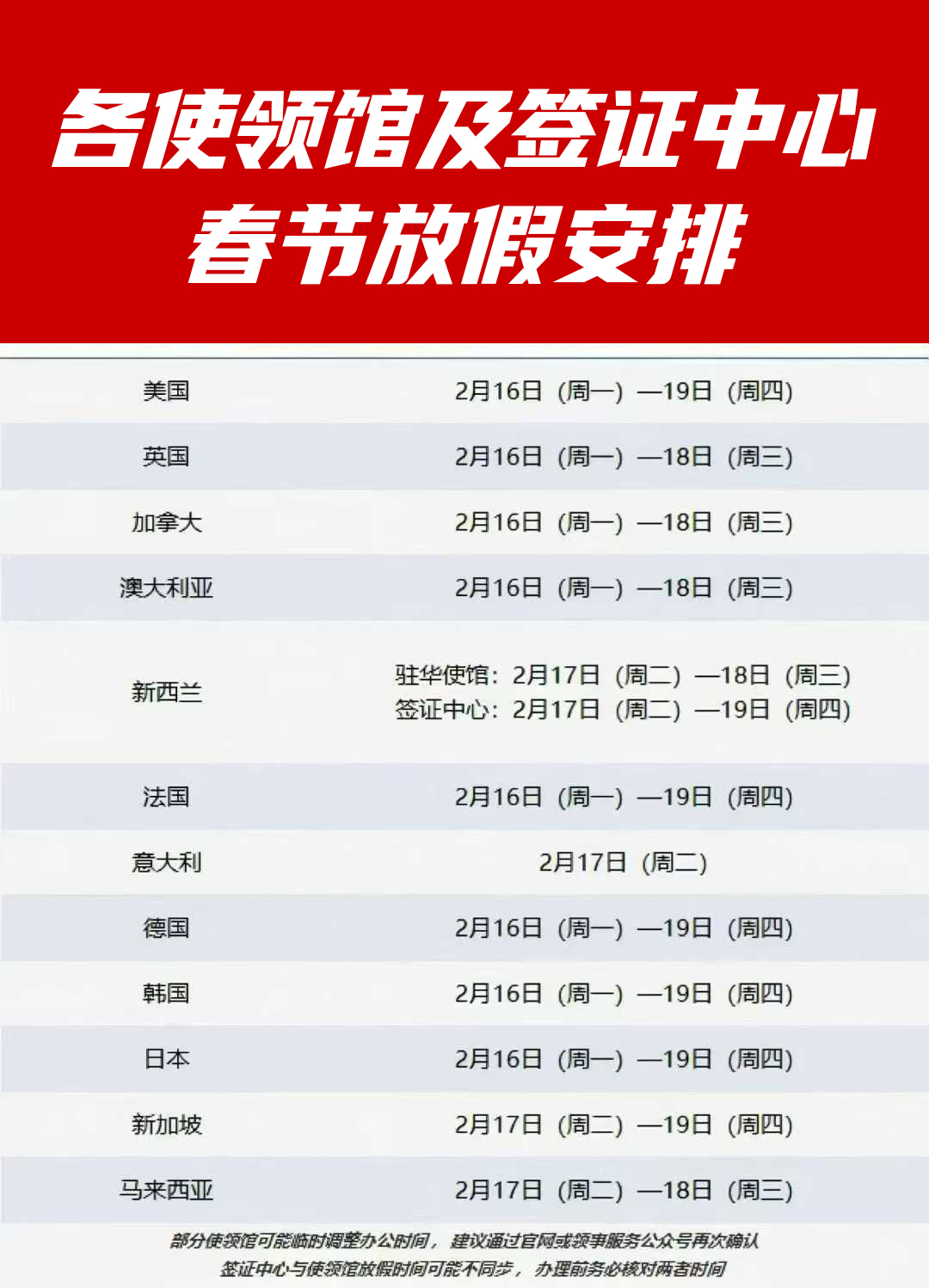 春节假期间,计划出国、办理签证的朋友们注意啦!