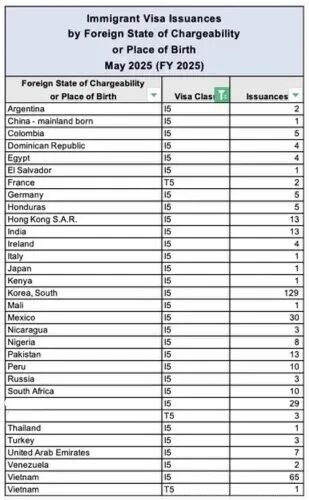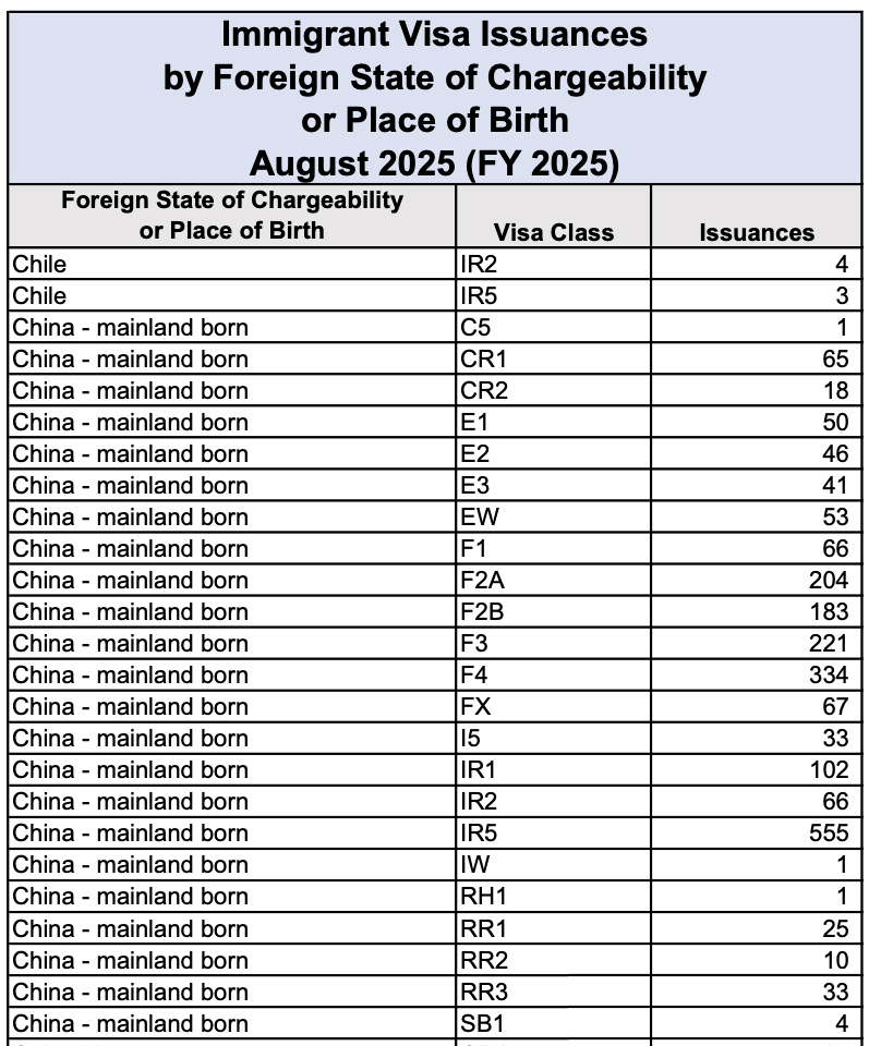 近期,美国国务院(DOS)集中发布了2025年6月至8月的签证发放报告。