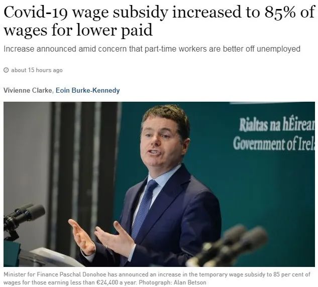 爱尔兰政府宣布提高临时工资补贴计划的金额,以帮助仍在上班的兼职工人继续工作,减少失业人数。