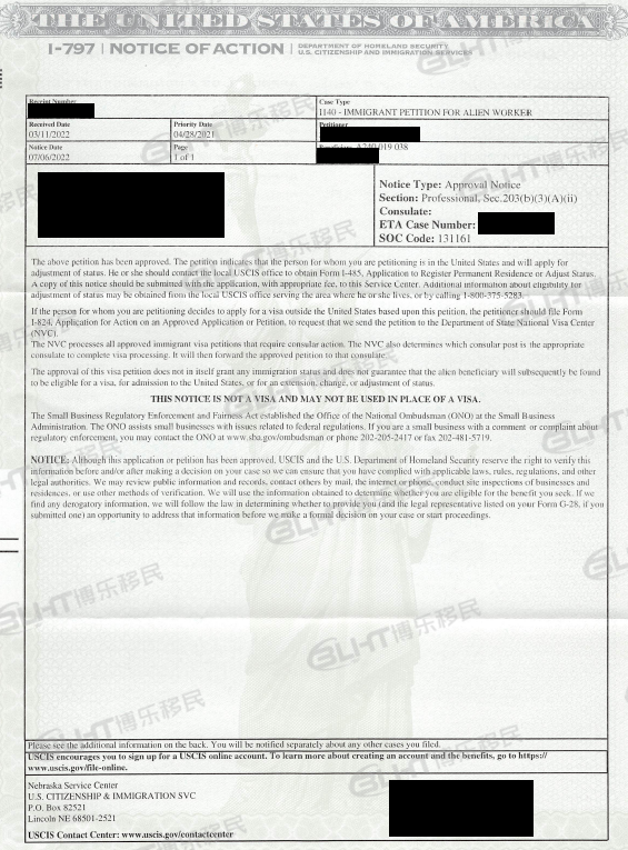 S先生,英国伦敦大学工商管理专业,申请项目为美国EB-3,移民目的是为了子女教育,I-140递交日为2022年03月14日,获批日为2022年07月06日。恭喜客户已经将获批函妥妥拿到手中!